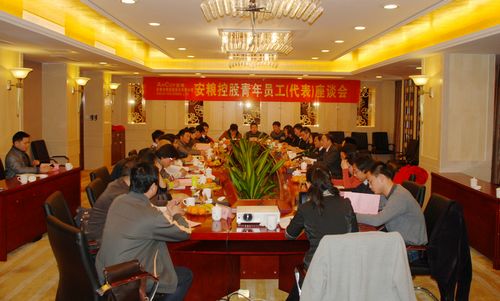 3月28日下午,公司在金滿(mǎn)樓康明國(guó)際大酒店組織召開(kāi)了公司成立以來(lái)首次青年員工(代表)座談會(huì)。會(huì)議由安糧控股辦公室、分工會(huì)組織,辦公室、分工會(huì)以及團(tuán)委負(fù)責(zé)人潘冬生、張來(lái)往、武義海、葉冬紅以及五大公司26名青年員工代表參加了座談會(huì)。葛志毅副總裁代表公司到會(huì)看望與會(huì)代表,他表示,公司非常重視青年員工的工作、學(xué)習(xí)和生活,并將對(duì)廣大青年員工提出的合理化建議和意見(jiàn)進(jìn)行認(rèn)真研究,予以采納和解答。