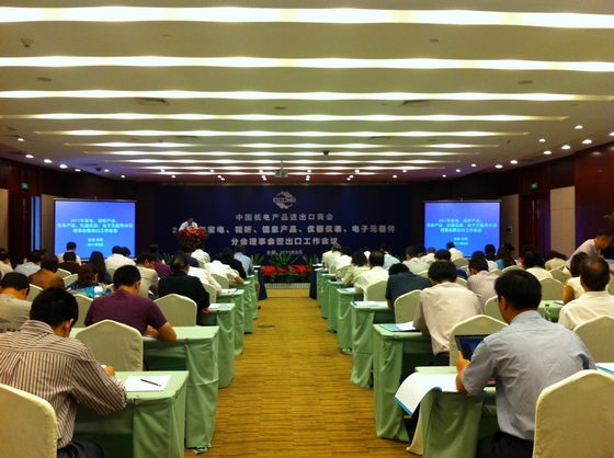 8月24日,由中國機電產(chǎn)品進出口商會主辦的“2011年家電、視聽、信息產(chǎn)品、儀器儀表、電子元器件分會理事會暨出口工作會議”在合肥天鵝湖大酒店舉行。作為機電商會視聽分會的理事單位,安糧國際總經(jīng)理助理吳國杰等人參加了會議。
