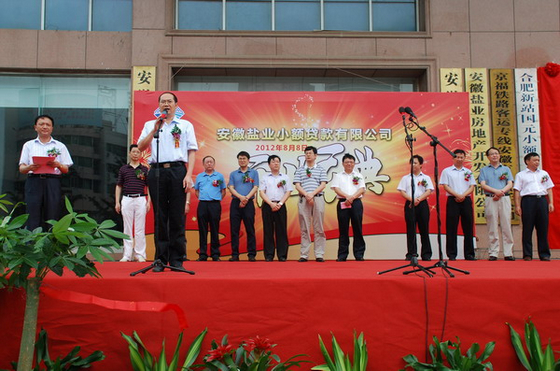 2012年8月8日上午,由公司參股的安徽鹽業(yè)小額貸款有限公司在安徽鹽業(yè)大廈舉行開業(yè)慶典。公司副總裁方宗友、財(cái)務(wù)副總監(jiān)張來往應(yīng)邀出席慶典儀式。