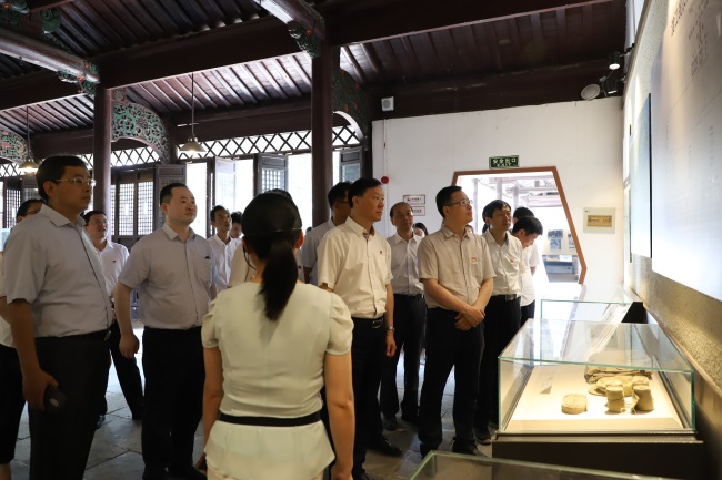 在瑤崗渡江戰(zhàn)役總前委舊址,黨員同志們?cè)诂F(xiàn)場(chǎng)講解員的帶領(lǐng)下,認(rèn)真觀看渡江戰(zhàn)役紀(jì)錄片,細(xì)致瀏覽一張張泛黃的歷史照片和珍貴的文獻(xiàn)實(shí)物,仔細(xì)端詳著陳舊卻依舊閃光的戰(zhàn)斗槍支、大刀和一件件浸潤(rùn)著先烈血汗的棉褥、草鞋,在生動(dòng)的講述中,感受70年前那段慷慨激昂、艱苦卓絕的革命歲月。