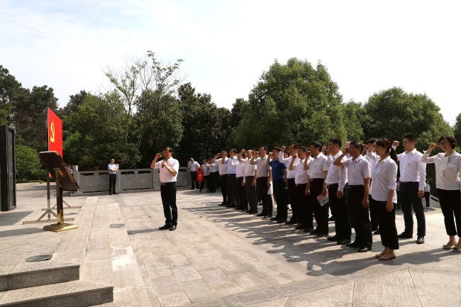 堅(jiān)守初心,勇?lián)姑?/span>6月28日上午,安糧集團(tuán)黨委組織集團(tuán)黨委班子及系統(tǒng)各基層黨支部支委以上干部共30余人赴肥東縣茶壺山革命烈士陵園、瑤崗渡江戰(zhàn)役總前委舊址,舉行緬懷革命先烈、重溫入黨誓詞、接受革命傳統(tǒng)教育活動(dòng),并現(xiàn)場(chǎng)召開(kāi)“不忘初心、牢記使命”主題教育動(dòng)員會(huì),以革命傳統(tǒng)教育開(kāi)啟安糧集團(tuán)主題教育第一課。