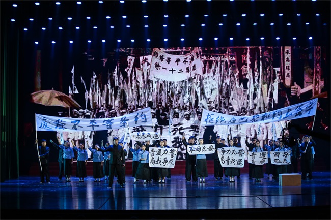 情景劇《使命的接力》分為四個篇章,前三個篇章以五四運(yùn)動、抗日戰(zhàn)爭、新中國成立以及改革開放等重要時間節(jié)點(diǎn)為背景,節(jié)選具有鮮明時代烙印的畫面,講述了一百年來中國人民的民族氣節(jié)和不屈不饒的奮斗歷程;最后一個篇章則回歸到當(dāng)下外貿(mào)工作中的一個真實(shí)場景,描述了新時代國貿(mào)人接過前輩的接力棒,不忘初心、牢記使命,在一次次的磨礪中不斷成長,立志為中華民族偉大復(fù)興貢獻(xiàn)力量的動人故事。