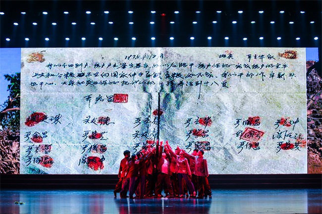 《我們都是追夢人》用昂揚(yáng)向上的歌曲和活力四射的舞蹈描繪了奮戰(zhàn)在新時代的國貿(mào)追夢人堅(jiān)守崗位、努力拼搏,共同建設(shè)“幸福國貿(mào)”的動人畫卷,也表達(dá)了國貿(mào)人熱愛祖國、祝福祖國的深切情義;《新時代》則以小崗村大包干為背景,反映安徽鄉(xiāng)村百姓的生活變化,折射出改革開放40年中華大地的滄桑巨變。