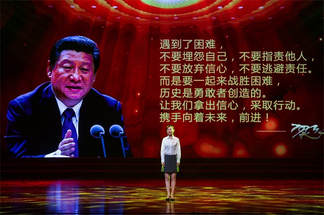 此外,本次演出國貿(mào)集團(tuán)黨委書記、董事長范陽還率國貿(mào)領(lǐng)導(dǎo)班子與安糧集團(tuán)黨委書記、董事長曹訓(xùn)立等各主要成員企業(yè)負(fù)責(zé)人,共同為大家奉獻(xiàn)了一首情真意切的配樂詩朗誦《國貿(mào)禮贊》。