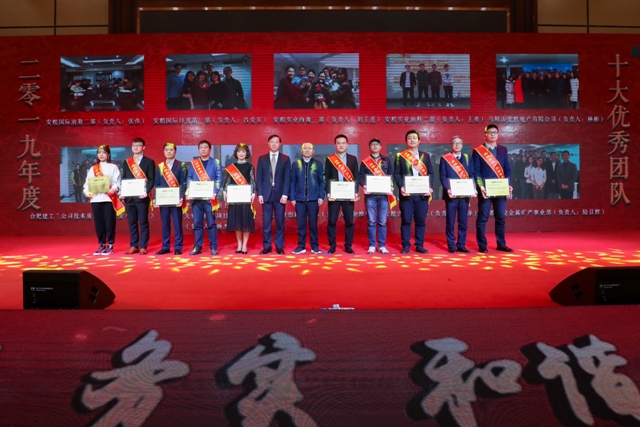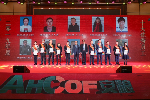 為總結(jié)經(jīng)驗(yàn)、鼓勵(lì)先進(jìn),集團(tuán)對(duì)2019年度涌現(xiàn)出的先進(jìn)集體和優(yōu)秀個(gè)人進(jìn)行了表彰,安糧集團(tuán)黨委副書記、紀(jì)委書記孫毅宣讀了《關(guān)于表彰2019年度先進(jìn)集體和個(gè)人的決定》。集團(tuán)領(lǐng)導(dǎo)為合肥建工、安糧國際、安糧實(shí)業(yè)三家“先進(jìn)單位”以及“十大優(yōu)秀團(tuán)隊(duì)”、“十大優(yōu)秀經(jīng)理”、“十大優(yōu)秀員工”進(jìn)行頒獎(jiǎng)。合肥建工陳龍、安糧控股陸召輝、安糧國際張偉分別作為獲獎(jiǎng)代表上臺(tái)發(fā)言。