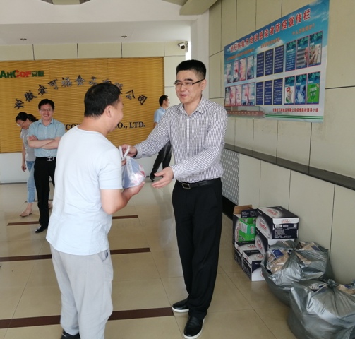 8月12日上午,安糧集團(tuán)副總裁、安糧實(shí)業(yè)董事長吳國杰,赴安可福食品有限公司開展調(diào)研工作并代表安糧集團(tuán)工會(huì)向一線人員工發(fā)放了礦泉水、仁丹、毛巾等防暑降溫用品,慰問奮戰(zhàn)在高溫生產(chǎn)一線的員工,叮囑大家在疫情期間尤其要注意做好防暑降溫,把身體健康放在第一位。