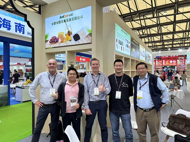 (業(yè)務人員在展會期間與澳大利亞果干協(xié)會主席洽談合影)