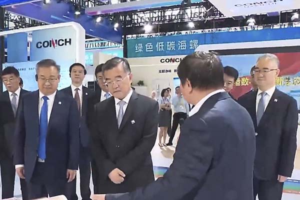 開幕式后,全國人大常委會副委員長張慶偉、省委書記梁言順、省長王清憲一行巡館,查看了海螺集團展館和海螺建筑光伏大道,聽取了海螺加快產(chǎn)業(yè)轉(zhuǎn)型升級,推動企業(yè)高質(zhì)量發(fā)展的情況介紹。