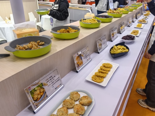 此次參展,公司從展品篩選到展位設(shè)計搭建,都圍繞“產(chǎn)品力+服務(wù)力”精心策劃。展品篩選方面,基于對市場需求的精準(zhǔn)把握和自身產(chǎn)品優(yōu)勢的深度挖掘,從豐富的產(chǎn)品線中挑選出具有代表性的流行菜品和新品,如深受市場認(rèn)可的“田田屋”米蘭蝦餅、玉米烙、黃金薯條、金玉滿堂、土豆絲餅等。