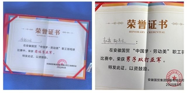 在5月27日落幕的 “中國夢?勞動美” 安徽國貿(mào)職工羽毛球賽中,安糧集團代表隊團結(jié)協(xié)作、奮力拼搏,奪得團體亞軍。來自安糧新鏈的楊杰文與安糧期貨的趙濤在單項賽中斬獲男子雙打亞軍,展現(xiàn)出安糧員工昂揚向上的精神風(fēng)貌。